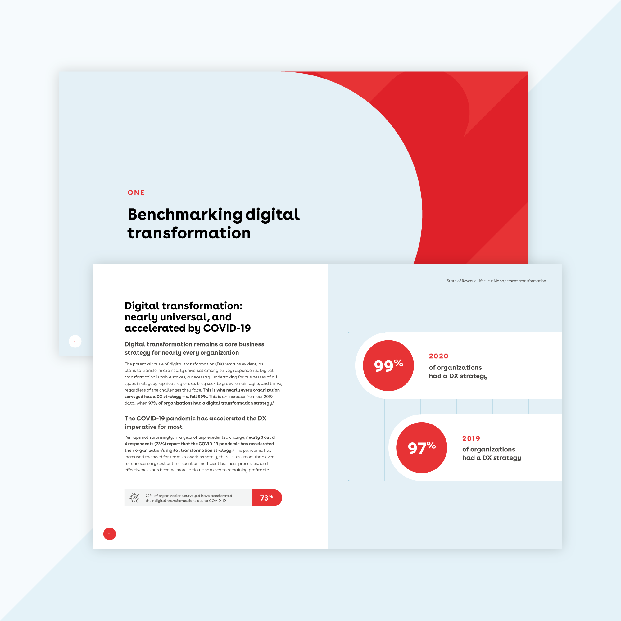The State of Revenue Lifecycle Management Transformation is Conga’s annual report that takes a deep dive into digital transformation - what the benefits are, the fundamental focus areas, and how companies can see greater success through this transformation. Conga discovered that in the first year, the average conversion rate for downloads was 1.28%. However, the download rate for this report was 2.29%, indicating it performed much better than average.